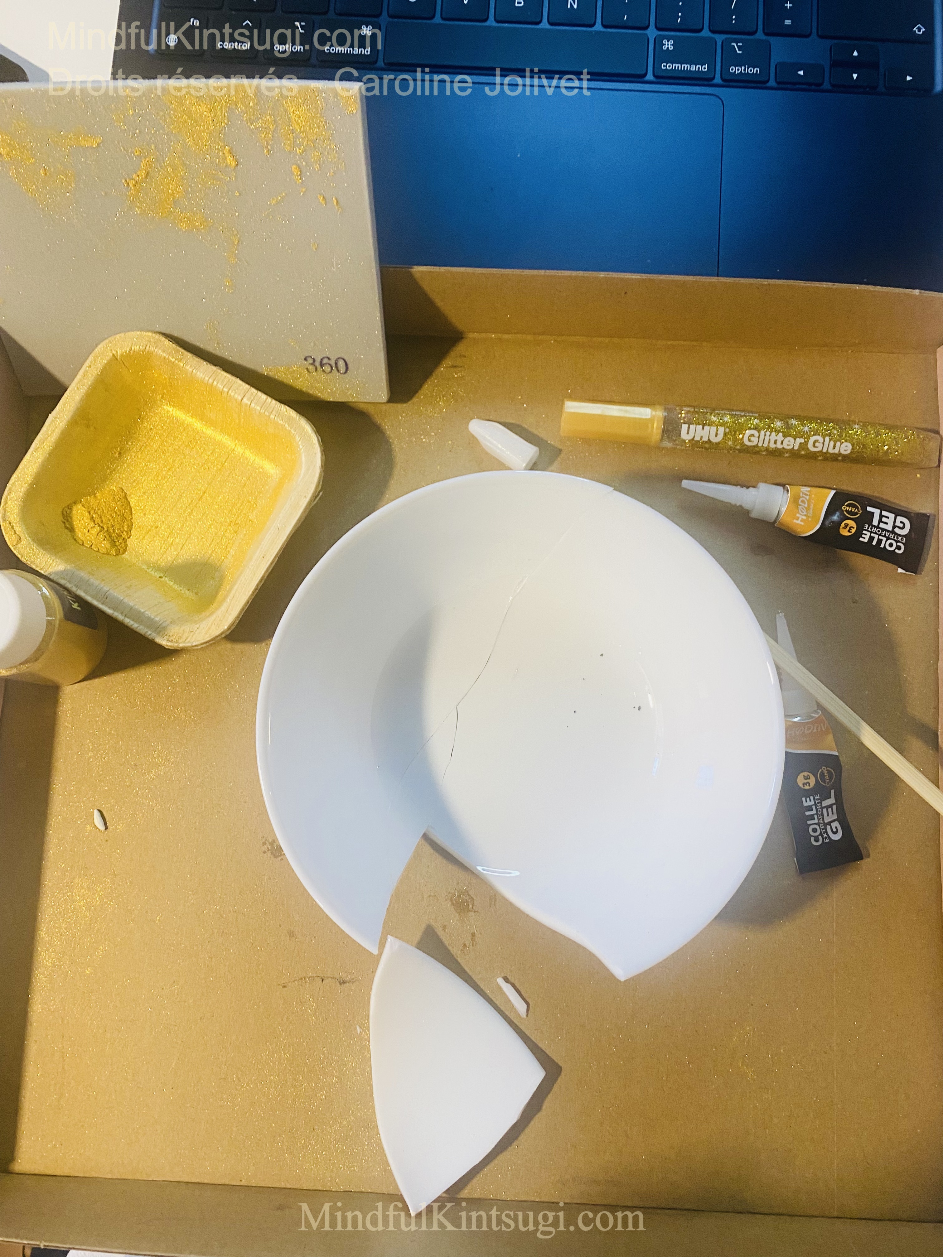 Je vous conseille un bol, une assiette, une coupelle, une tasse qui ne soit pas cassé en plus de 3/4 morceaux pour faciliter la réparation. L'objet doit être en céramique.